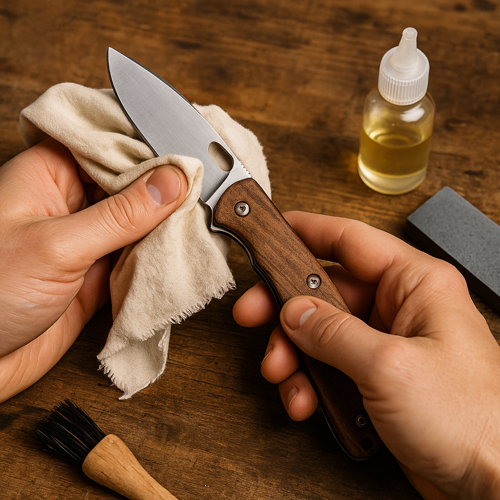 Apply a light oil to the blade and pivot/bolster areas periodically to protect the metal.